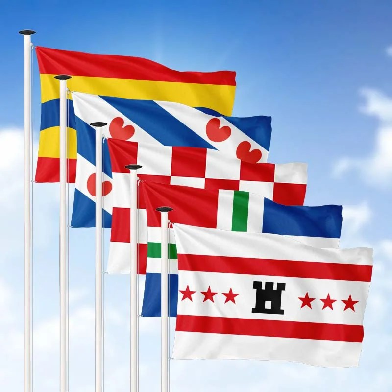 Afwerking: Vlag rondom dubbel gezoomd, verstevigingsband aan mastzijde, lusje aan bovenzijde, koord aan onderzijde. U kunt eenvoudig een provincievlag bestellen! Kies op basis van kleurvastheid, formaat, prijs en levertijd. Wilt u hulp bij een specifieke provincie, budget of formaat? Laat het ons weten — we helpen u graag verder!